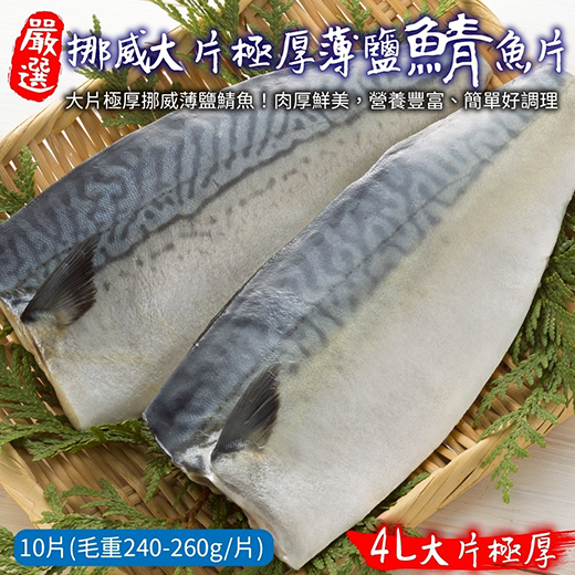 ●極厚挪威薄鹽鯖魚240-260gx5片●