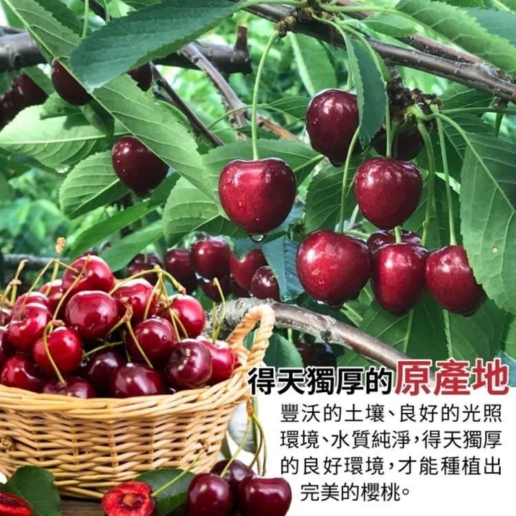 最頂級的櫻桃,也是人氣最高的水果,屬高緯度之優良品種,該區日夜溫差大,乾燥的山谷氣候,土地肥沃又無污染,造就了櫻桃顆顆果肉堅實飽滿,香甜多汁。
