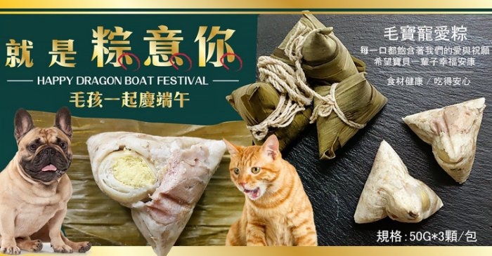 贈品名稱: 捐899元贈「犬貓吃的」《就是粽意你》鮮食元氣肉粽 毛寶寵愛粽,專屬狗狗貓貓的端午節 (寵物生鮮食品冷凍出貨) 贈品總數: 1人 已結案 (2021-06-15 09:07:04) 報名人員: 朵拉(已付款)、 候補人員: 說明: 協會不單是在救貓,