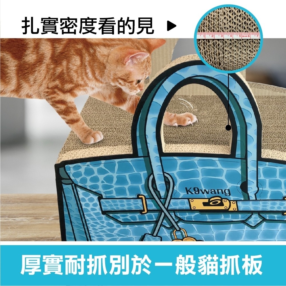 寵喵樂-愛貓加大雙層柏金包藍綠色款貓草貓抓板》EP-503