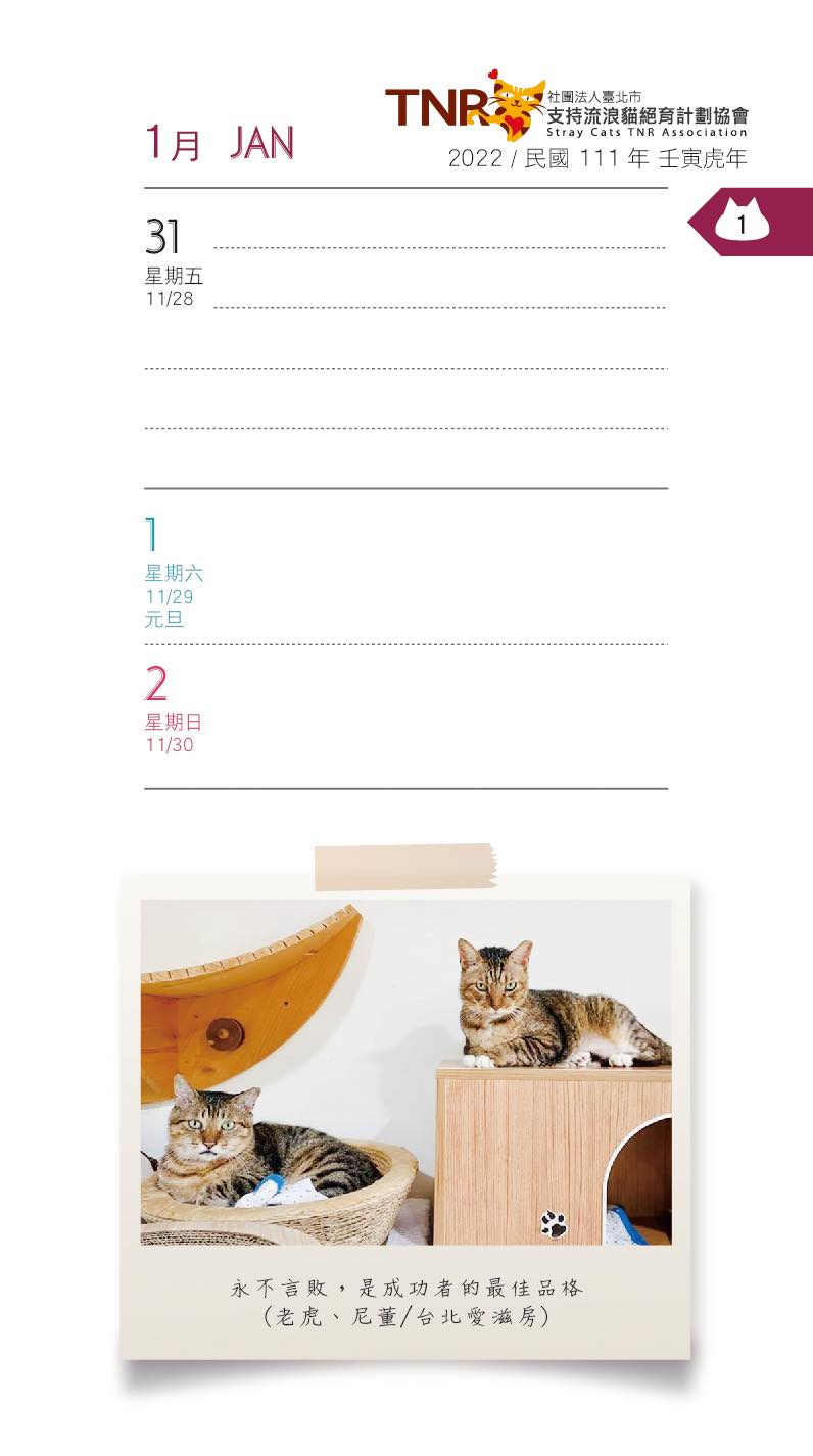 捐500元 贈2022年好事成雙 TNR掛曆 2本