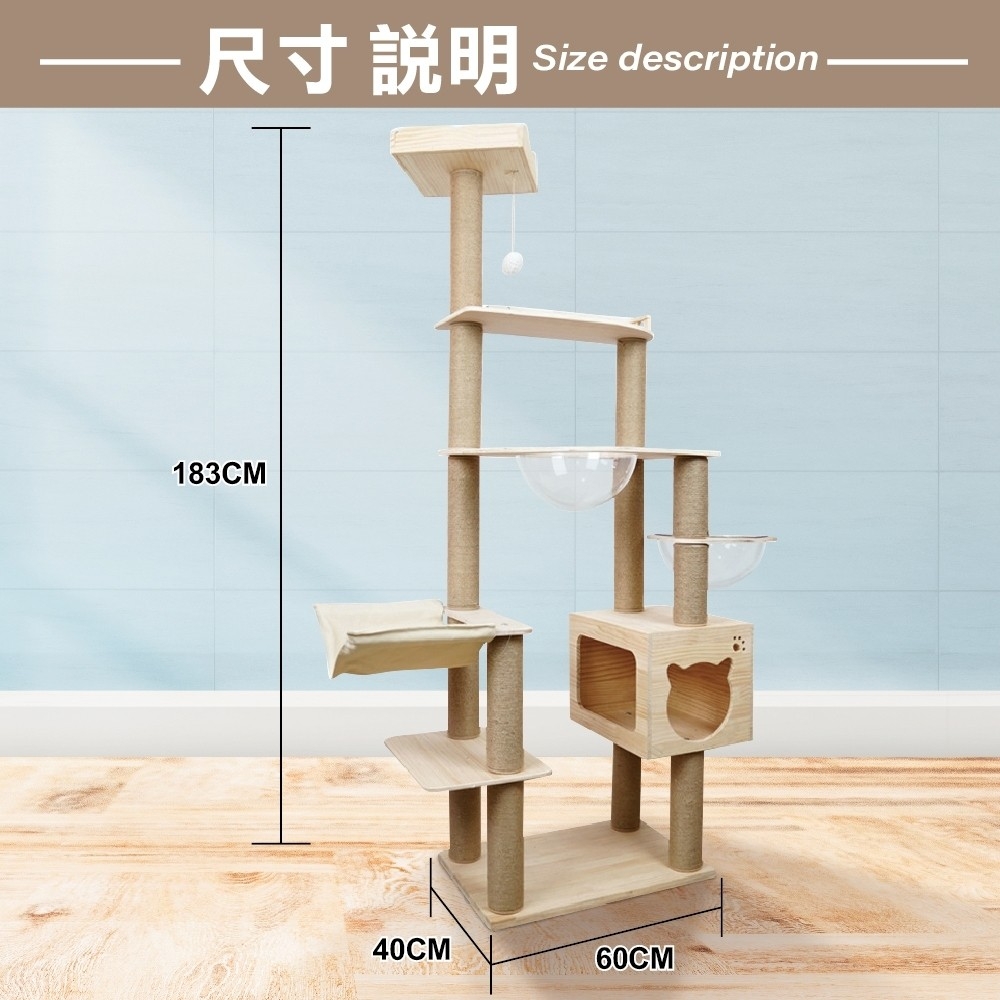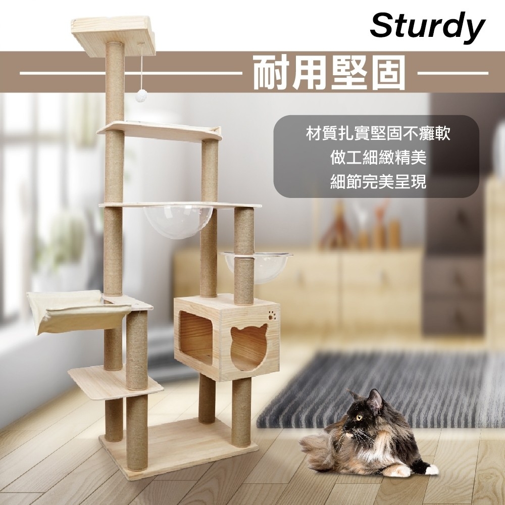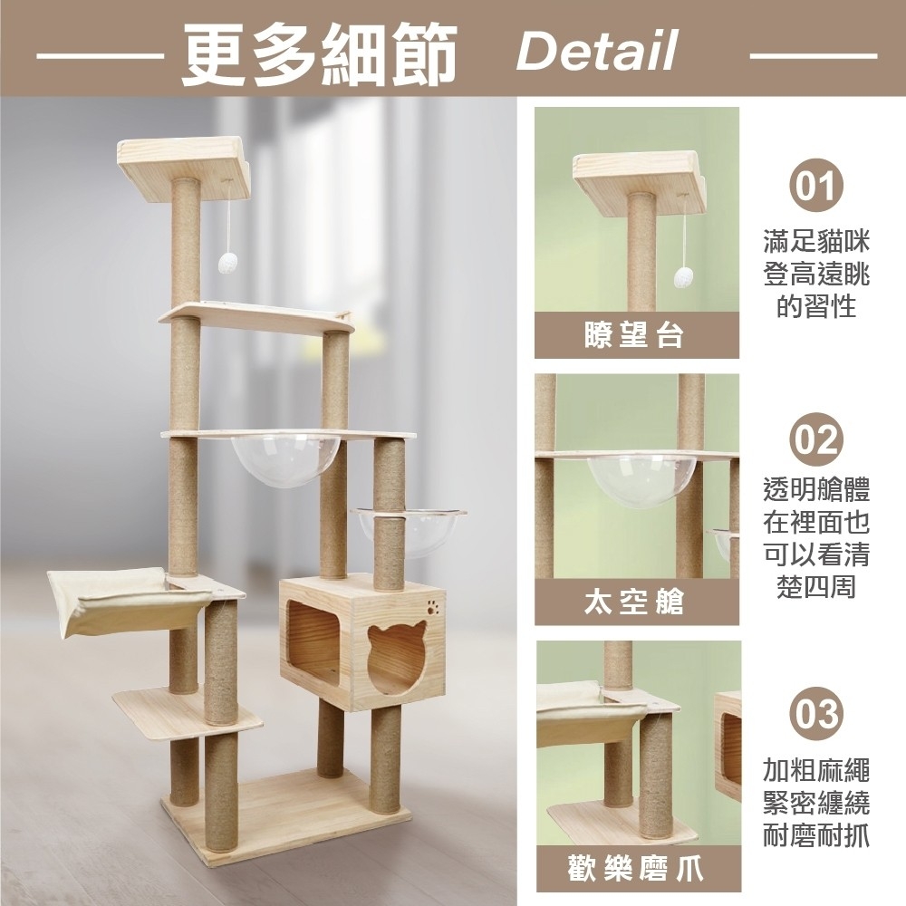●寵喵樂-實木款多層太空艙加高加大吊床貓跳台02●