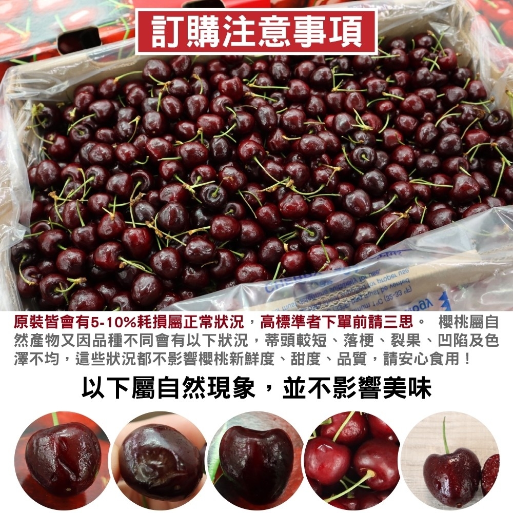 ※櫻桃屬自然產物又因品種不同會有以下狀況, 蒂頭較短、落梗、裂果、凹陷及色澤不均,這些狀況都不影響櫻桃新鮮度、甜度、品質,請安心食用