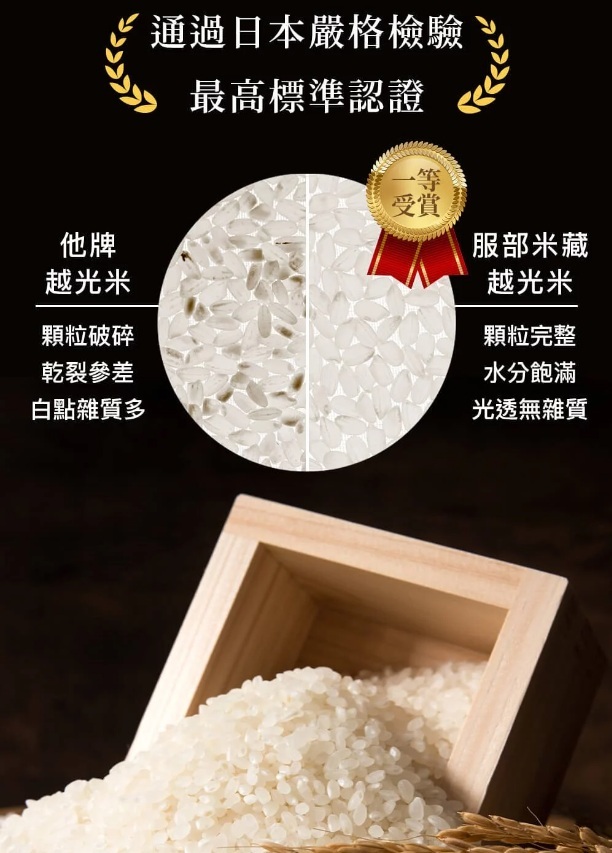 在日本當地皆經過一等米檢驗通過,回台灣後亦經SGS認證無農藥、重金屬合格,每年一收,數量有限。
