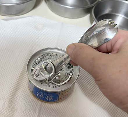 【使用方式】湯匙的背面,貓耳朵部份置於拉環下,可輕鬆拉啟罐頭。