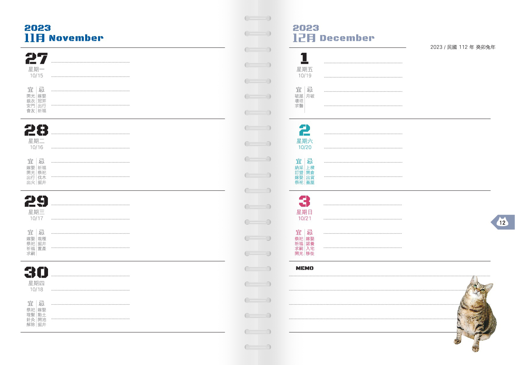 正、反皆有筆記欄位,彩印成環狀筆記本