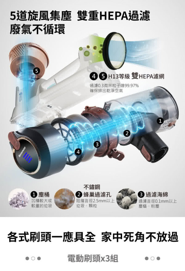 ★ 雙HEPA:H13等級雙重過濾不汙染