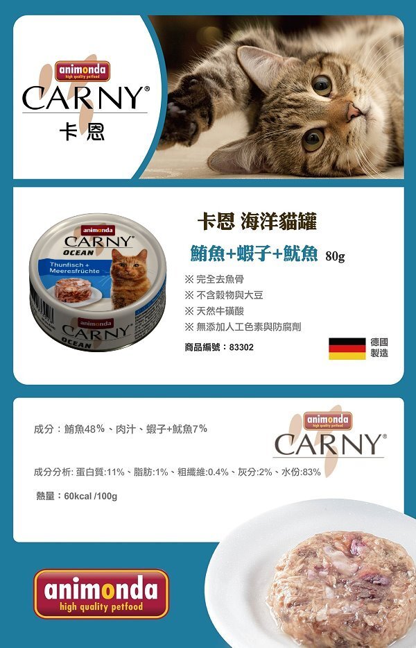●Animonda Carny Ocean《卡恩》鮪魚+蝦子+魷魚 80g●