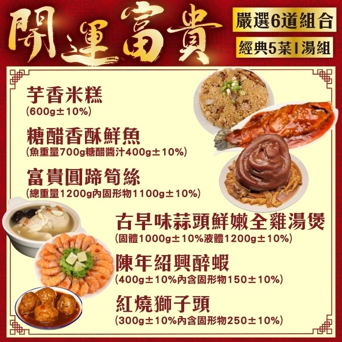 贈品名稱: 捐1950元贈開運富貴6道年菜禮盒組(5菜1湯/適合6-8人份) 贈品總數: 7人 已結案 (2023-01-16 22:11:47) 報名人員: 毛毛(已付款)、毛毛(已付款)、阿雪阿姨(已付款)、Ivy Chiang(已付款)、Pony(已付款)、Ago Walker(已付款)、桑哥、桑逢辰(已付款)、 候補人員: 說明: 歡迎大家踴躍捐助,