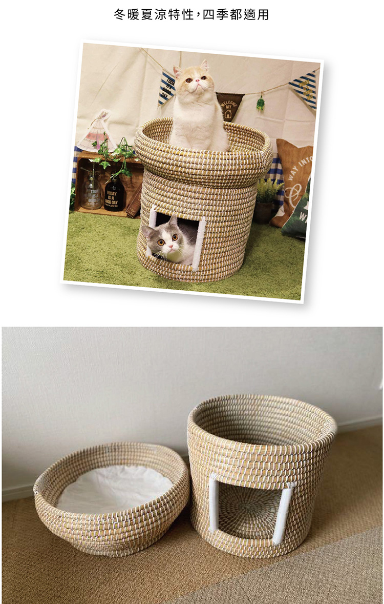 ●日本CattyMan貓用編織圓頂雙層睡窩●