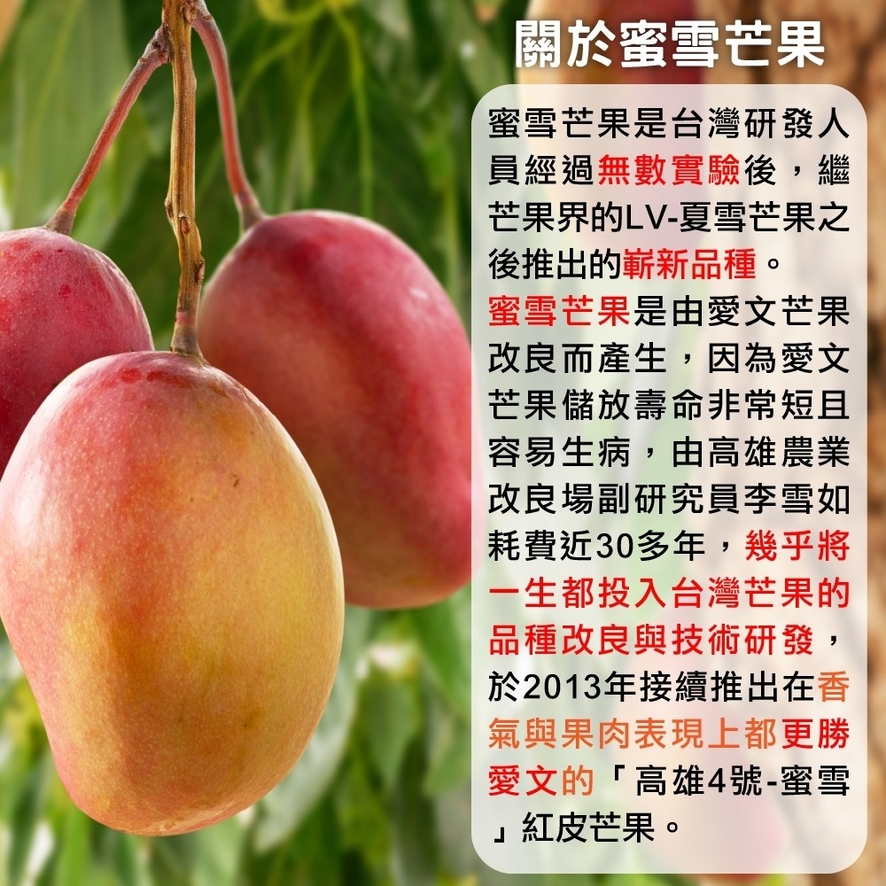 蜜雪芒果是由開放雜交授粉的愛文芒果後裔中選出,