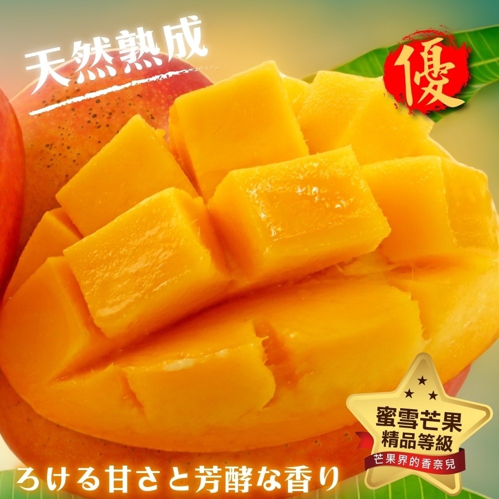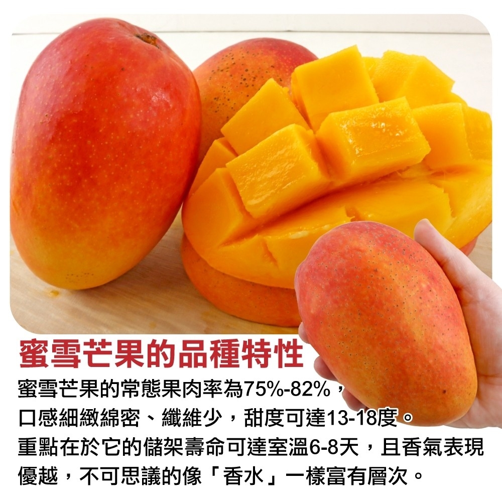 蜜雪芒果擁有橘黃帶點粉的色澤,蒂頭處會有淡淡花香,