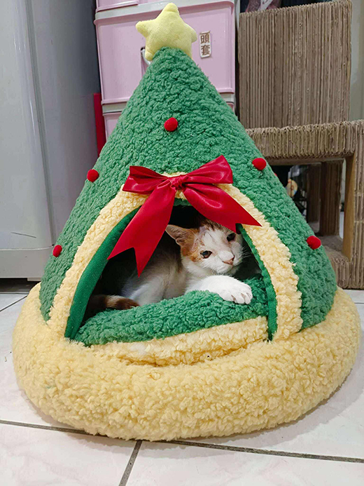 聖誕貓樹洞睡窩隱蔽、保暖、不易扁塌,貓咪最愛。