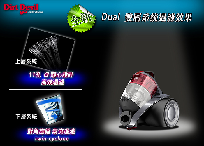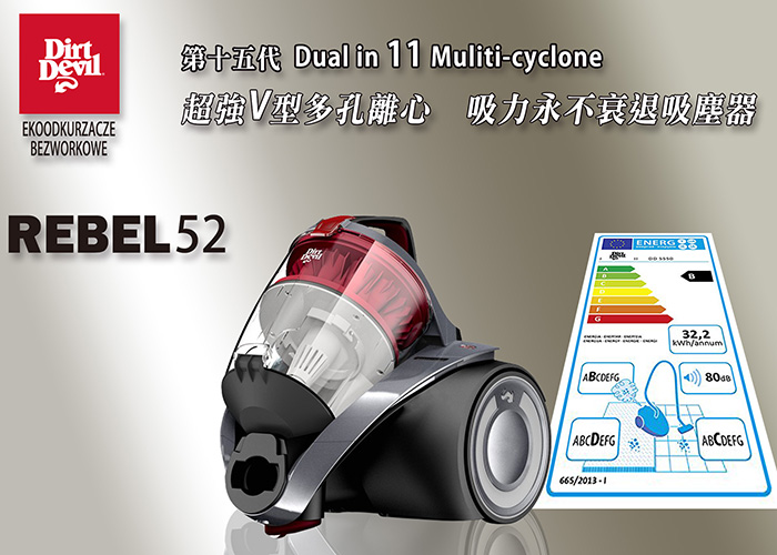 Dirt Devil Rebel52 第15代Dual雙層過濾系統超強V型多孔離心力吸塵器超強吸力,輕鬆搞定!