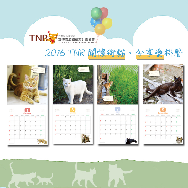 由TNR協會志工拍攝的街貓及協會安養貓咪共同擔任不同月份之主角,