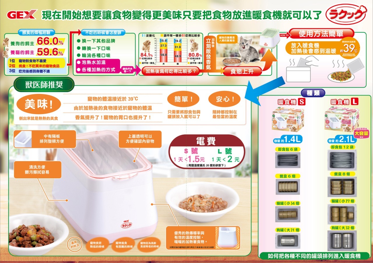 熱熱吃,好香好好吃!。GEX暖食器讓食物達到獨特的39℃,簡單就能夠溫熱食物的功能在日本大受好評。不但可以讓食用量增加且能提高嗜口性。簡單的一個小步驟,給犬貓無比的幸福感受。