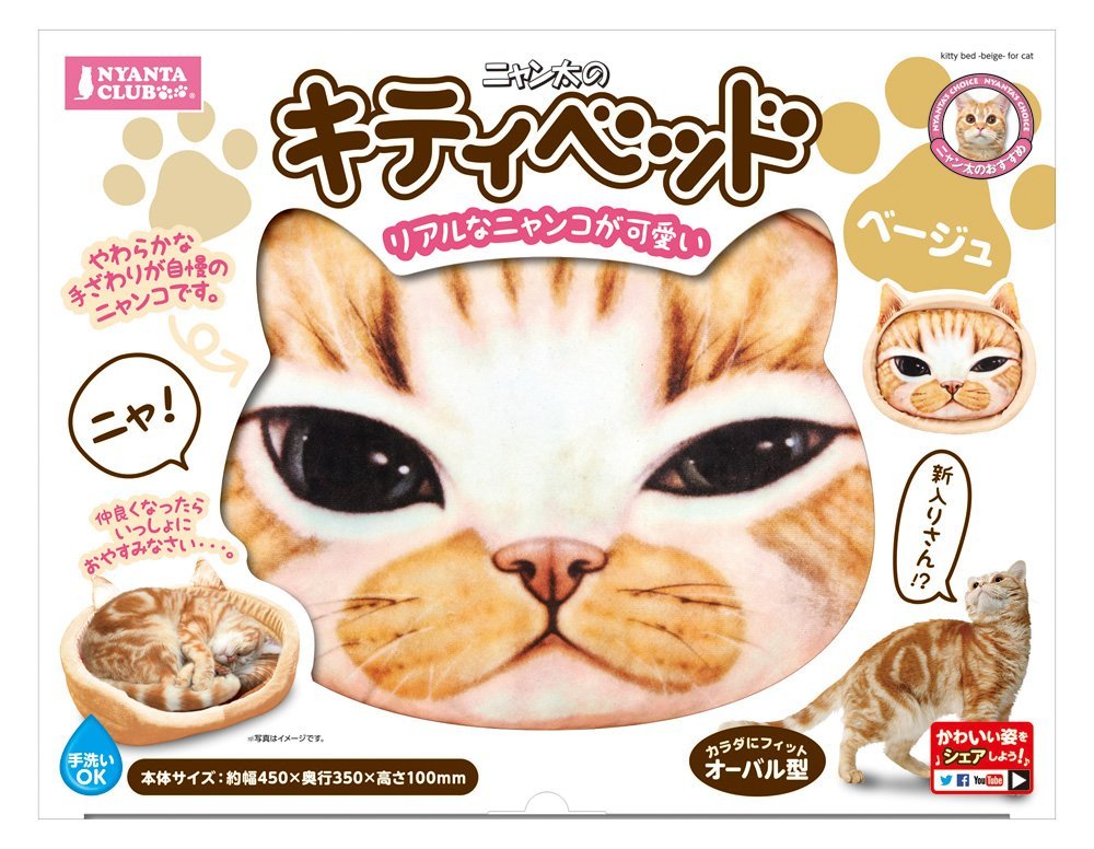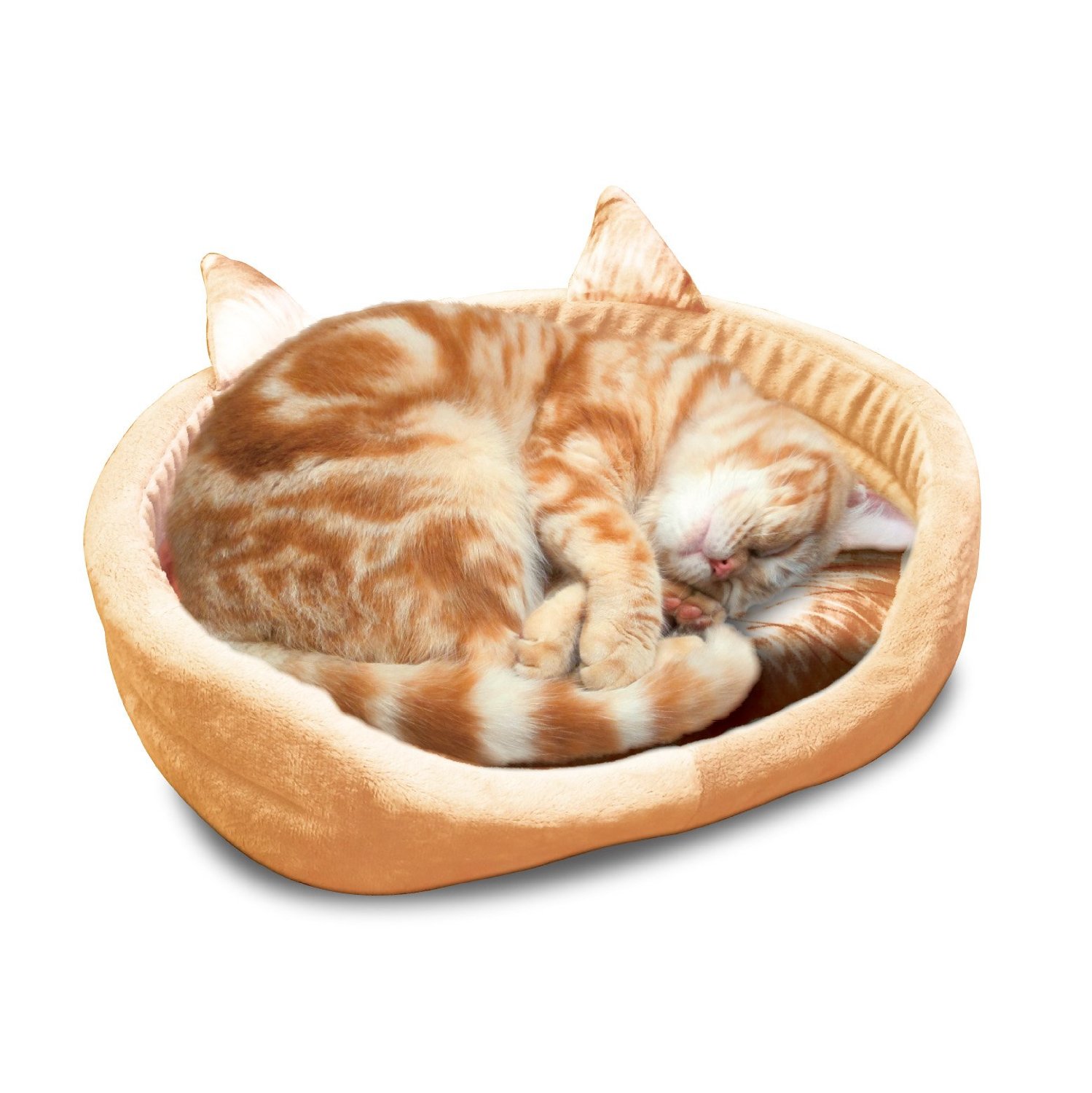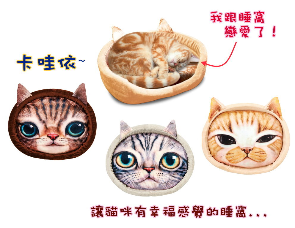 可愛貓臉寫真印花圖樣,橢圓形適合貓咪愛捲曲的身型。