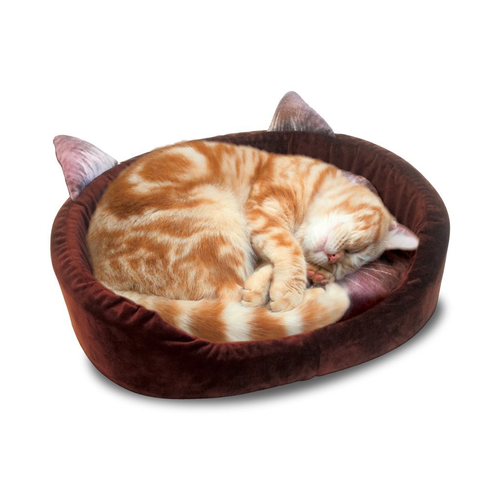 可愛貓臉寫真印花圖樣,橢圓形適合貓咪愛捲曲的身型。