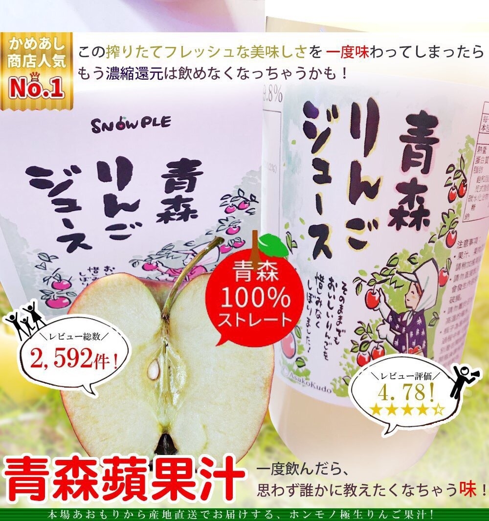 日本青森99.9%飛馬蘋果汁6瓶1000ml/瓶