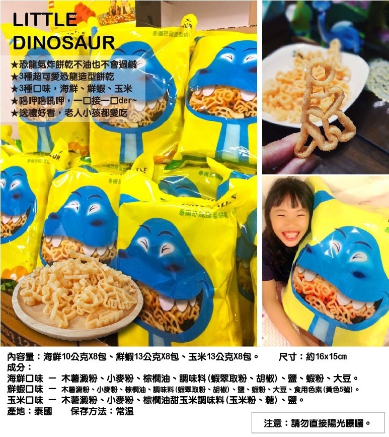 贈品名稱: 捐599元贈新一代【LITTLE DINOSAUR】泰國恐龍綜合版造型餅乾X1袋組【24包】 贈品總數: 50人 已結案 (2018-01-24 15:54:01) 報名人員: 羊咩(已付款)、王慧玉(已付款)、LisaC x2(已付款)、Shan Chou(已付款)、jane(已付款)、 候補人員: 說明: 泰國恐龍新版夯爆全社團