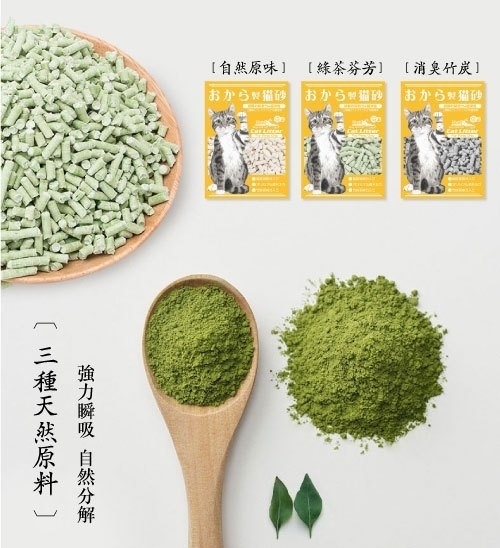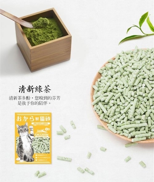 【綠茶配方成分】豆渣、綠茶香料、澱粉。