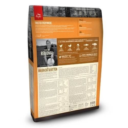 新鮮雞肉(18%), 新鮮火雞肉(7%), 新鮮全蛋(5%), 新鮮雞肝(5%), 新鮮完整比目魚(4%), 新鮮完整鯡魚(4%), 新鮮火雞肝(4%), 新鮮雞心(4%), 新鮮火雞心(4%), 新鮮雞脖子(4%), 雞肉(脫水, 4%), 火雞肉(脫水, 4%), 完整鯖魚(脫水, 4%), 完整沙丁魚(脫水, 4%), 完整鯡魚(脫水, 4%), 雞脂肪(3%), 完整紅扁豆, 完整綠豌豆, 完整綠扁豆, 完整鷹嘴豆, 完整黃豌豆, 扁豆纖維, 完整花豆, 完整白豆, 雞軟骨(脫水, 1%), 鯡魚油(1%), 雞肝(冷凍乾燥), 火雞肝(冷凍乾燥), 新鮮完整南瓜, 新鮮完整冬南瓜, 新鮮完整櫛瓜, 新鮮完整防風草, 新鮮蘿蔔, 新鮮完整五爪蘋果, 新鮮完整巴特梨, 新鮮甘藍菜, 新鮮菠菜, 新鮮甜菜, 新鮮蘿蔔菜, 棕海帶, 完整蔓越莓, 完整藍莓, 完整薩斯卡頓莓, 菊苣根, 薑黃, 水飛薊, 牛蒡根, 薰衣草, 蜀葵根, 玫瑰果.