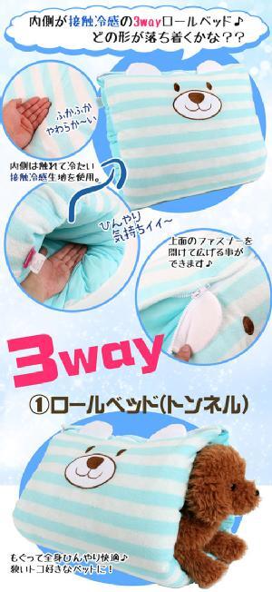 內側有3層滾動床,表面有涼爽的冷卻感(裡面是蓬鬆的絨毛面)•側面有拉鍊可拉開變成長條型的睡床,讓狗狗貓貓趴睡,拉鍊拉上就變成桶狀造型的窩唷! 也可以平鋪變成後軟墊讓寵物趴在上面,有散熱的功能!