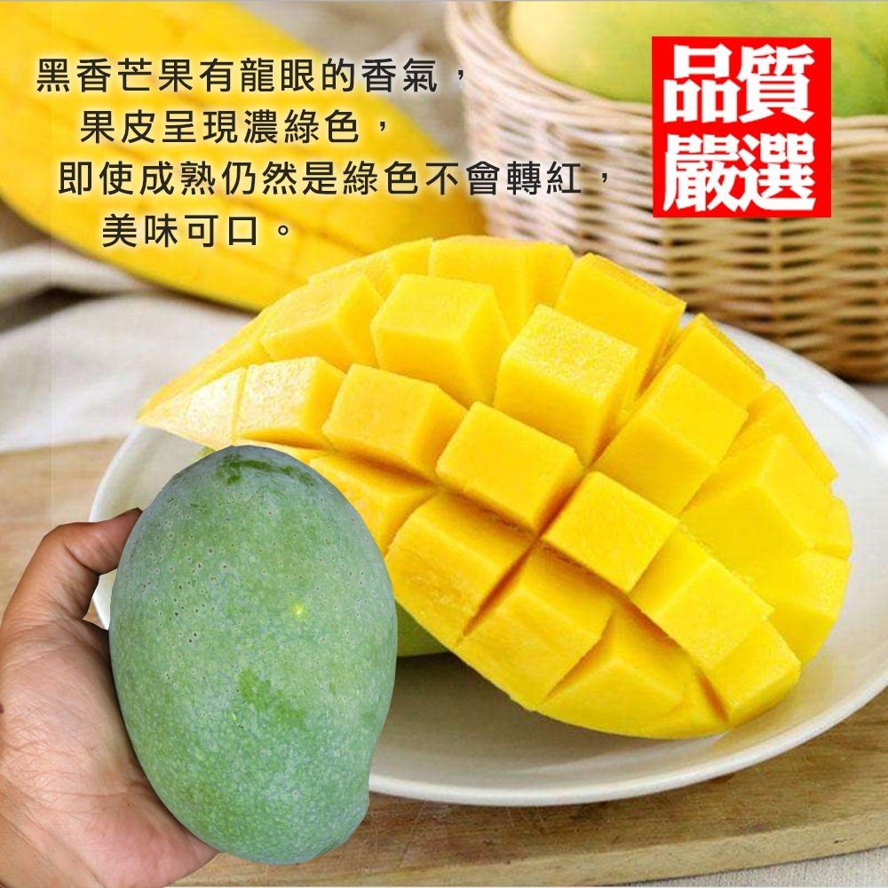 黑香芒果有龍眼的香氣,果皮呈現濃綠色,即使成熟仍然是綠色不會轉紅,讓許多消費者錯過了與它相識的機會!其實黑香芒果非常香甜,果肉成橘黃色,纖維很少,肉質又Q又好吃,因為台灣栽培面積少,通常在台南一帶,所以一採收就會被識貨的老饕搶光。嶺南吳大哥細心呵護,安全用藥,就是要給你吃最高品質的芒果喔!想吃到神秘的黑香芒果,心動不如馬上行動囉!