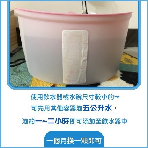 5. 若寵物喝水的容器較小或是容器為水瓶,請先把草本磚泡在約5公升的大容器內,約1-2小時後,再將大容器中的水裝入寵物飲水的容器裡。