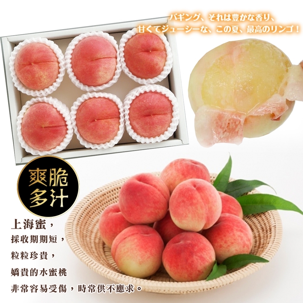 汁多肉細果粒大,色澤飽滿帶紅潤,軟而細緻的肉質,濃韻芬芳的香氣一顆顆仔細挑選,從外形、香氣、果肉到甜度,唯有通過檢測標準的水蜜桃我們才能放心出貨。