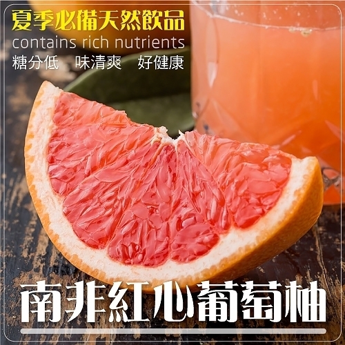 來自南非溫暖潮濕的氣候,孕育出的葡萄柚一顆顆結實圓潤,晶瑩剔透的紅色果肉如同紅寶石閃閃發亮,集柚子和甜橙優點於一身,豐富維生素C、檸檬酸,纖維素,促進消化代謝,身體順暢,酸酸甜甜的滋味風味十足,清甜多汁,榨成果汁涼涼一杯超解渴!