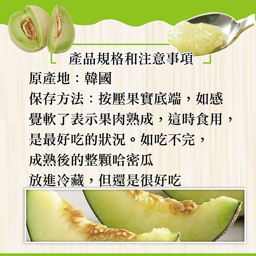 韓國綠肉哈蜜瓜,送禮最佳選擇,水分超多超級甜的,肉質綿密,口感濃郁,有入口即化的超有感feel。