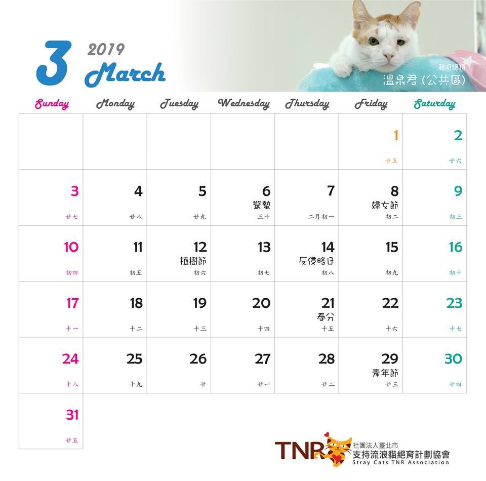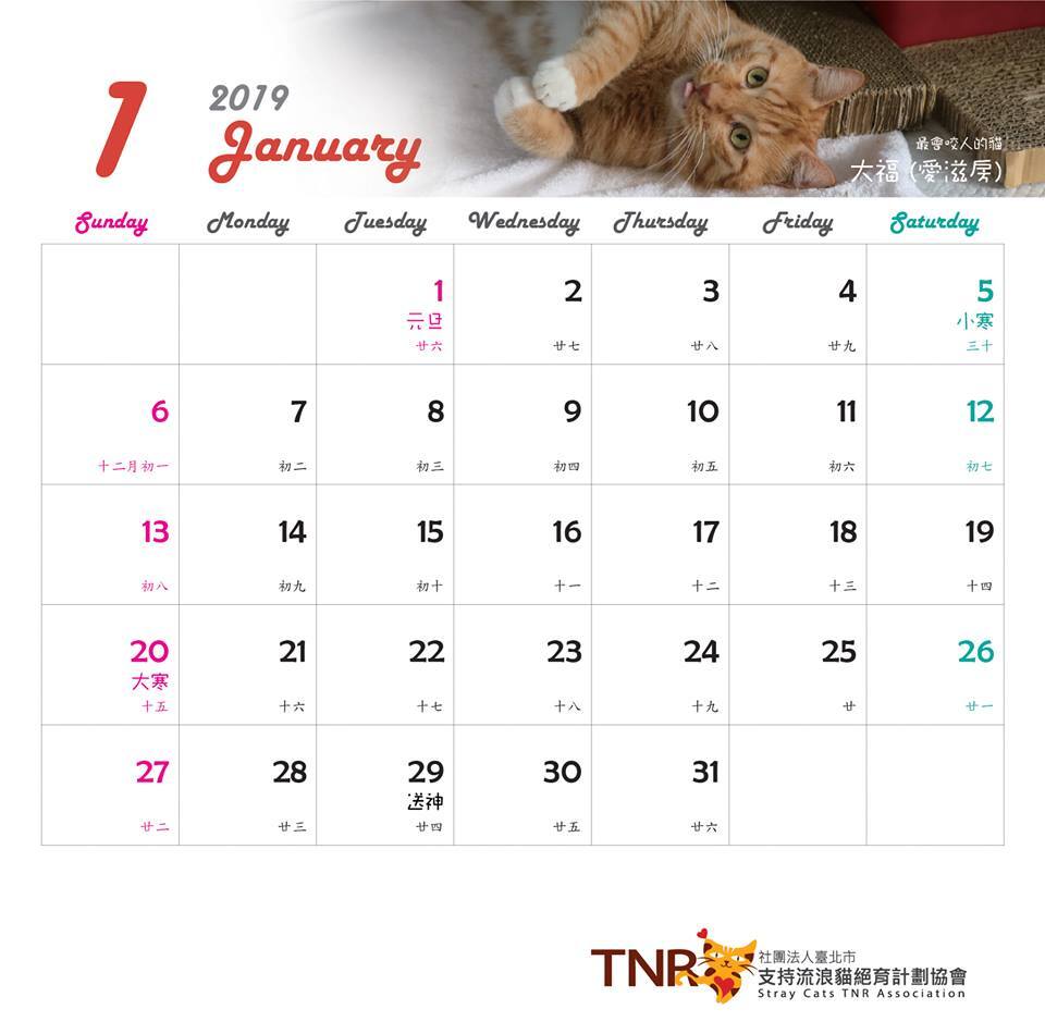 由TNR協會志工拍攝的街貓及協會安養貓咪共同擔任不同月份之主角,