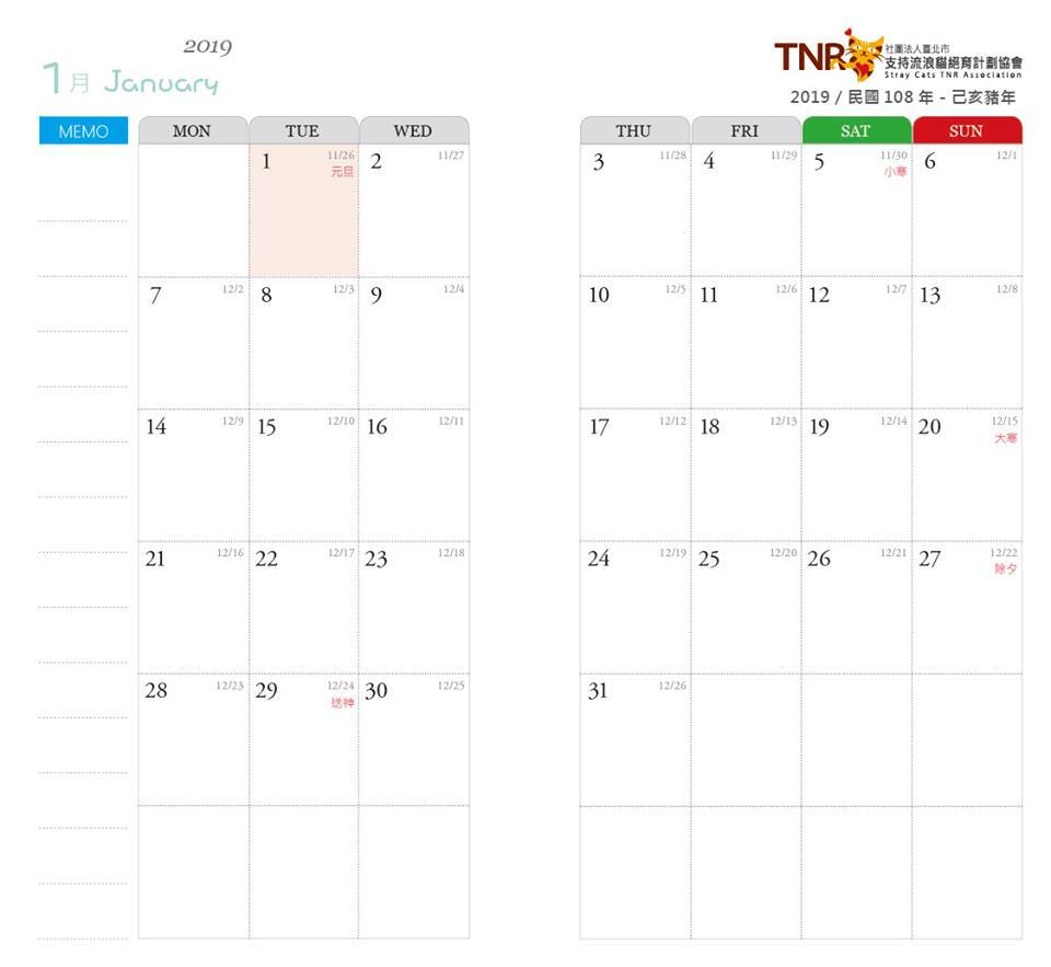 捐款1000元-贈2019年TNR愛您依舊掛曆【6本】