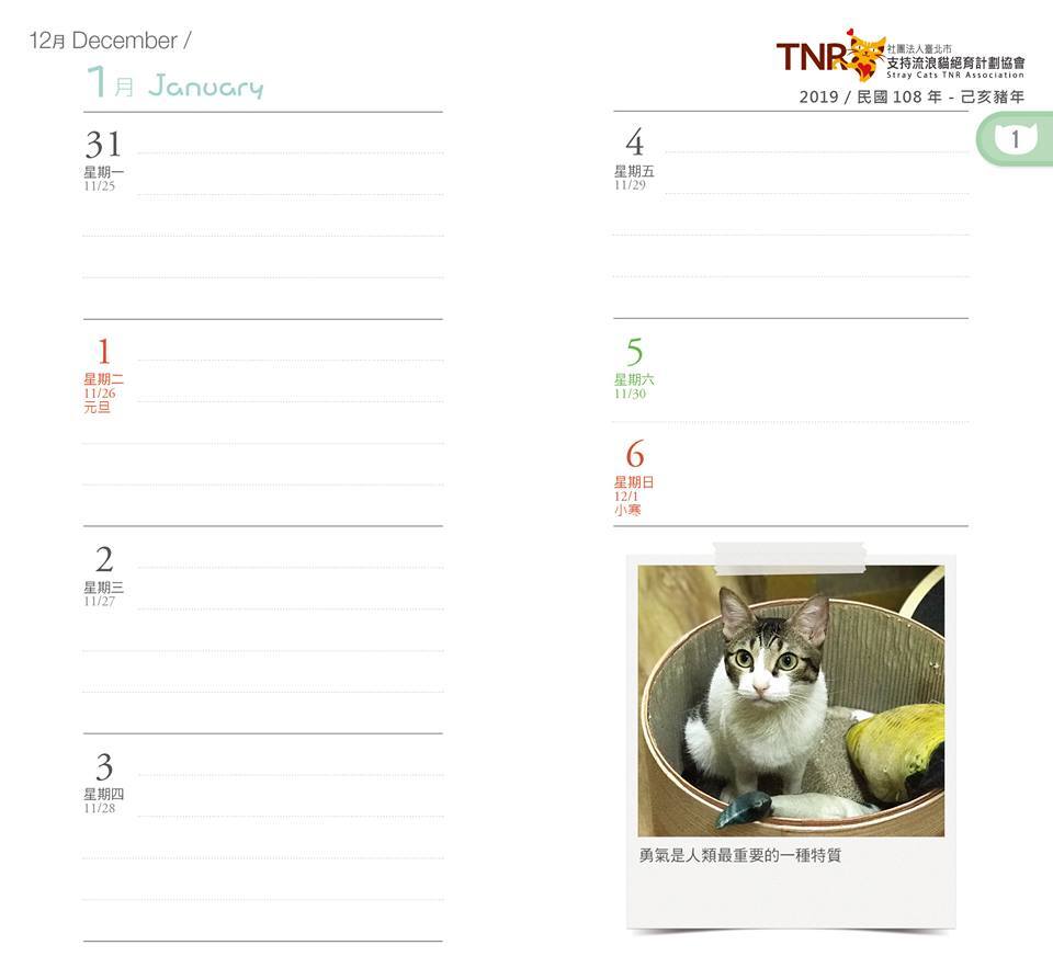 捐款1000元-贈2019年TNR愛您依舊掛曆【6本】