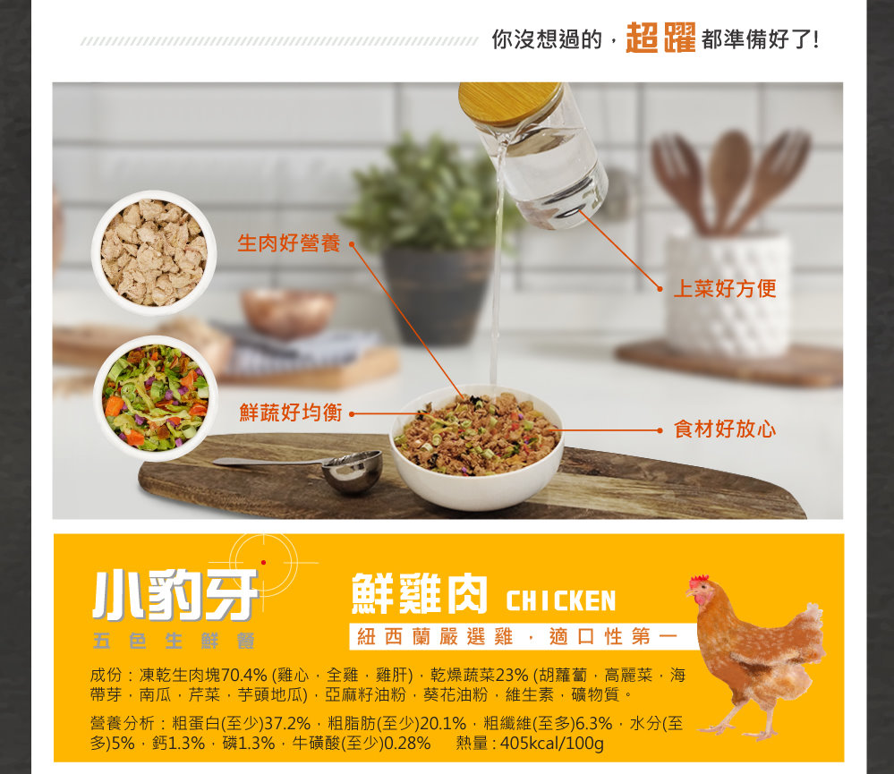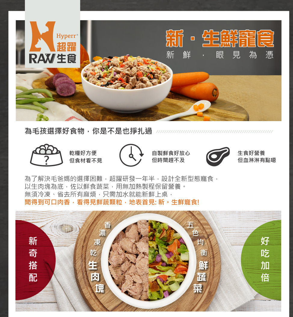 捐 990 元贈 HyperrRAW超躍 小豹牙五色生鮮餐 200克*2包(不同口味隨機出貨)