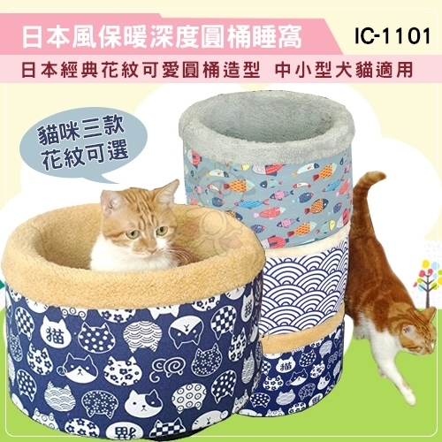 寵喵樂《日本風保暖深度圓桶睡窩》超厚實造型犬貓睡床/睡窩IC-1101