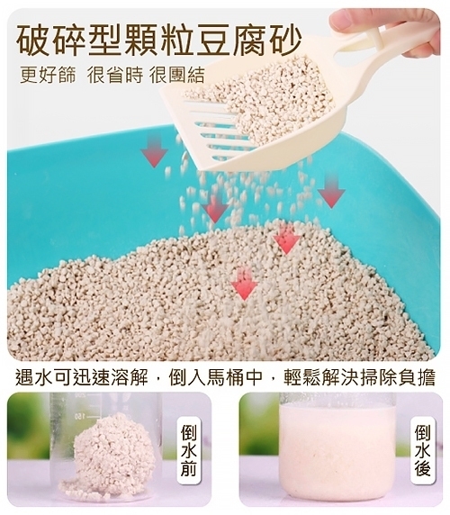 1.寵喵樂破碎型/仿礦豆腐砂因為形狀是仿礦的破碎狀,粉塵顆粒會比一般條狀豆腐砂多一些,是正常的情況