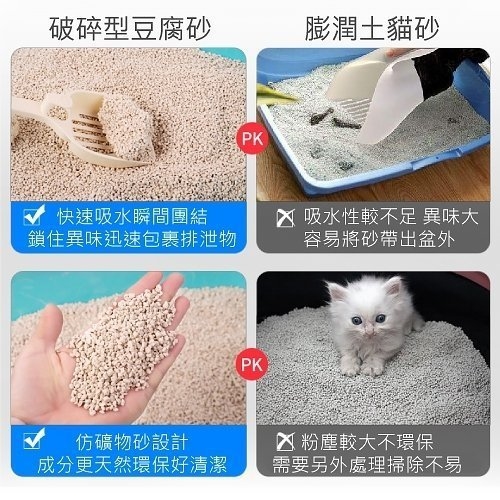 A:仿礦型貓砂兼具【礦砂-貓咪喜歡的砂質觸感/豆腐砂-主人輕便方便打掃】兩者的優點。