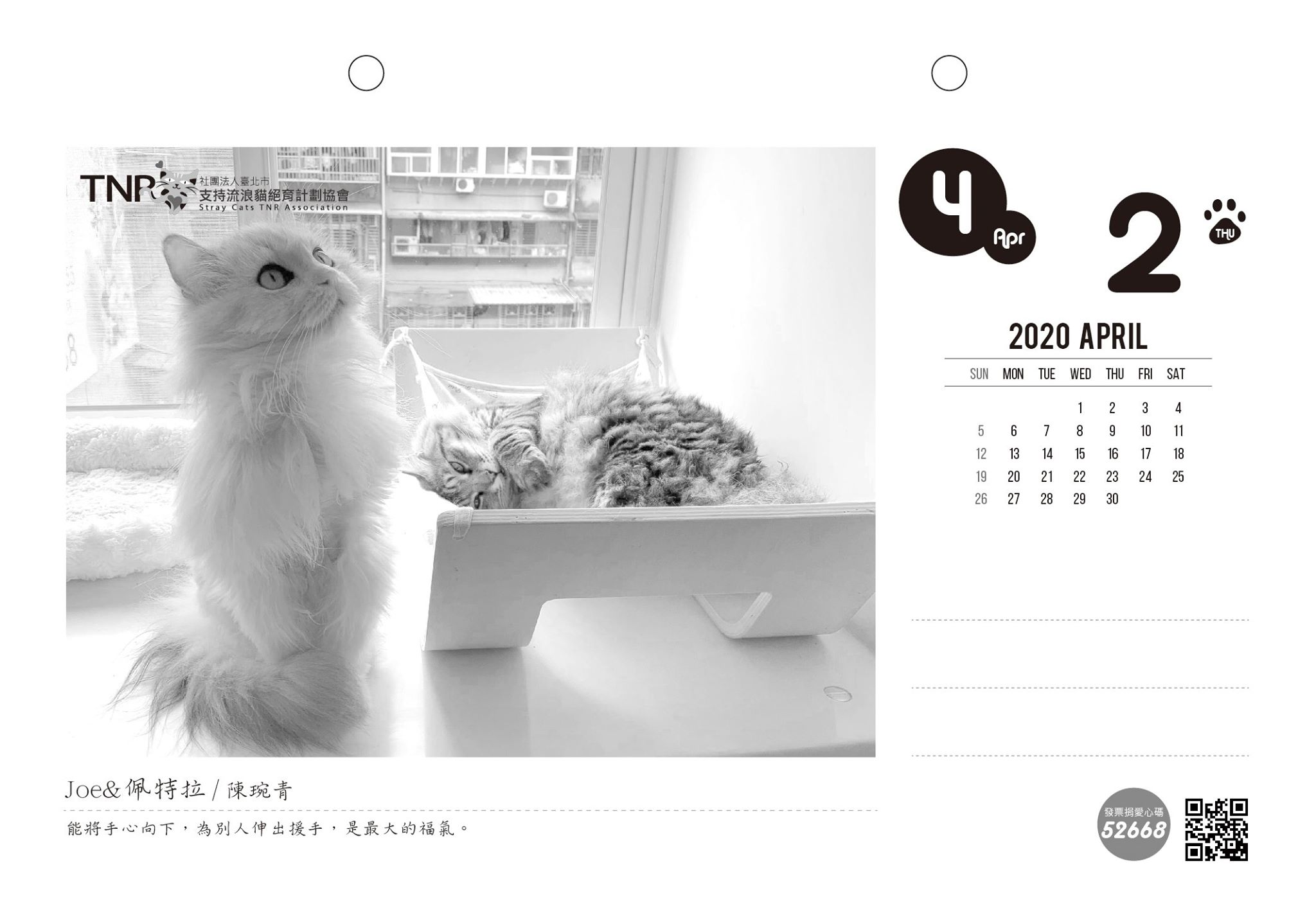 由TNR協會志工拍攝的街貓及協會安養貓咪共同擔任不同月份之主角,