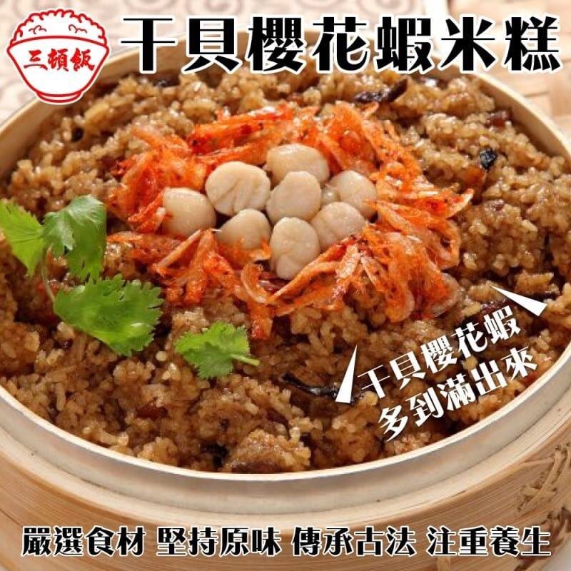 干貝櫻花蝦米糕內容物:長糯米、豬肉絲、櫻花蝦、干貝、蝦米、大豆沙拉油、香菇絲、紅蔥酥、醬油、水、味霖(糖、水、糯米、米麴、釀造酢、鹽)、米酒、老抽(水、黃豆、鹽、麵粉、砂糖、焦糖)、食鹽、砂糖、白胡椒粉、肉桂粉、五香粉(小茴、油桂、大茴、丁香、甘松)、麥芽糊精、雞肉粉、水解醬油粉、酵母抽出物、洋蔥粉、調味劑(L-麩酸鈉、琥珀酸二鈉、5'-鳥嘌呤核?磷酸二鈉、5'-次黃嘌呤核?磷酸二鈉、DL-胺基丙酸、胺基乙酸)