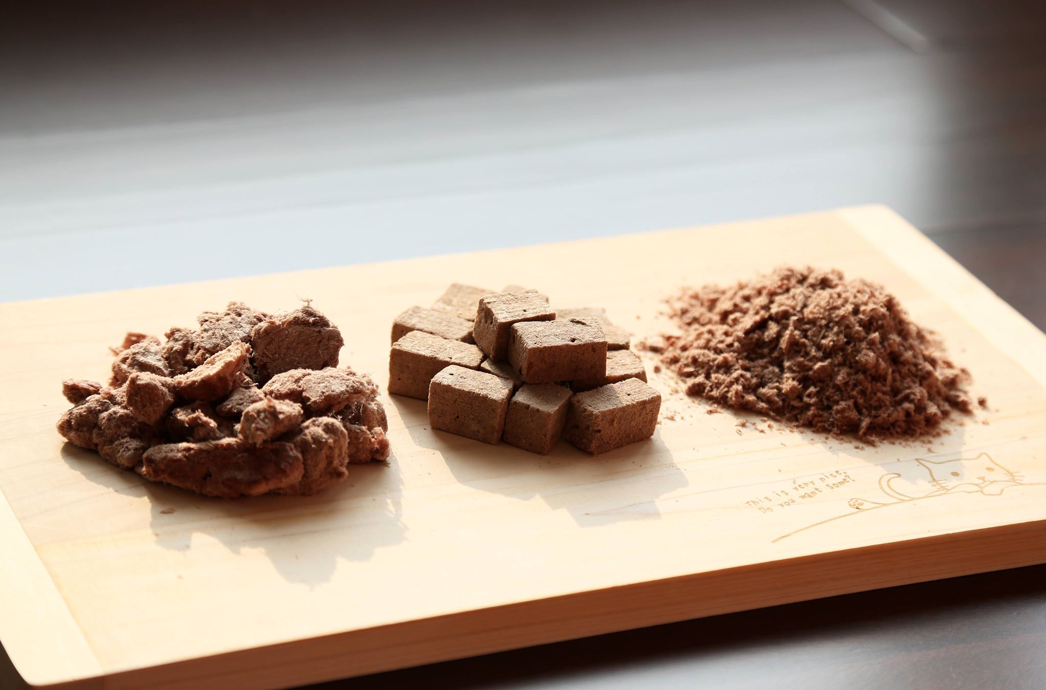 1.請注意純肉塊需泡水、或是捏碎與剪小塊餵食,避免貓咪食用過快,忽略咀嚼而嘔吐。