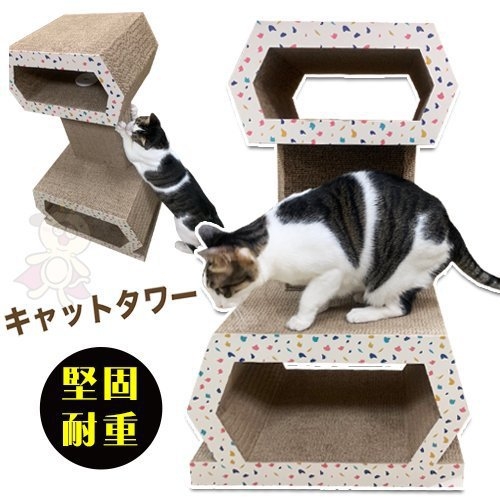 寵喵樂 雙層六角組合貓抓板跳台CJ19005