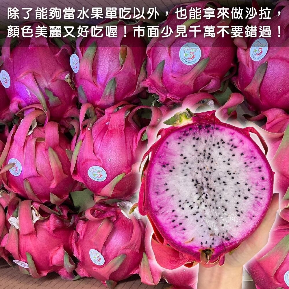 粉紅佳人的火龍果,它是由白肉與紅肉種雜交選育而成,外觀綠色的萼片較長,果肉呈現奇特的粉紅色,同時具有白肉種的爽脆與紅肉種的甜美,無草腥味之外還帶有淡淡的茉莉花香,目前市面上相當少見唷!