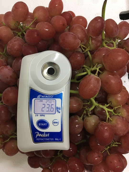 紅無籽葡萄果實呈狹長鵝卵形,果皮薄而果肉脆,甜度平均高達21度以上。