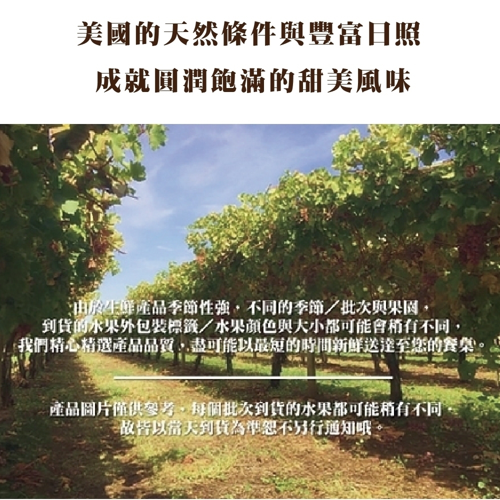 正宗美國葡萄農場生產空運,經十多年交叉育種,培育出無籽且具備獨特外型的新式葡萄,風味香甜口感飽滿多汁,深受消費者喜愛!