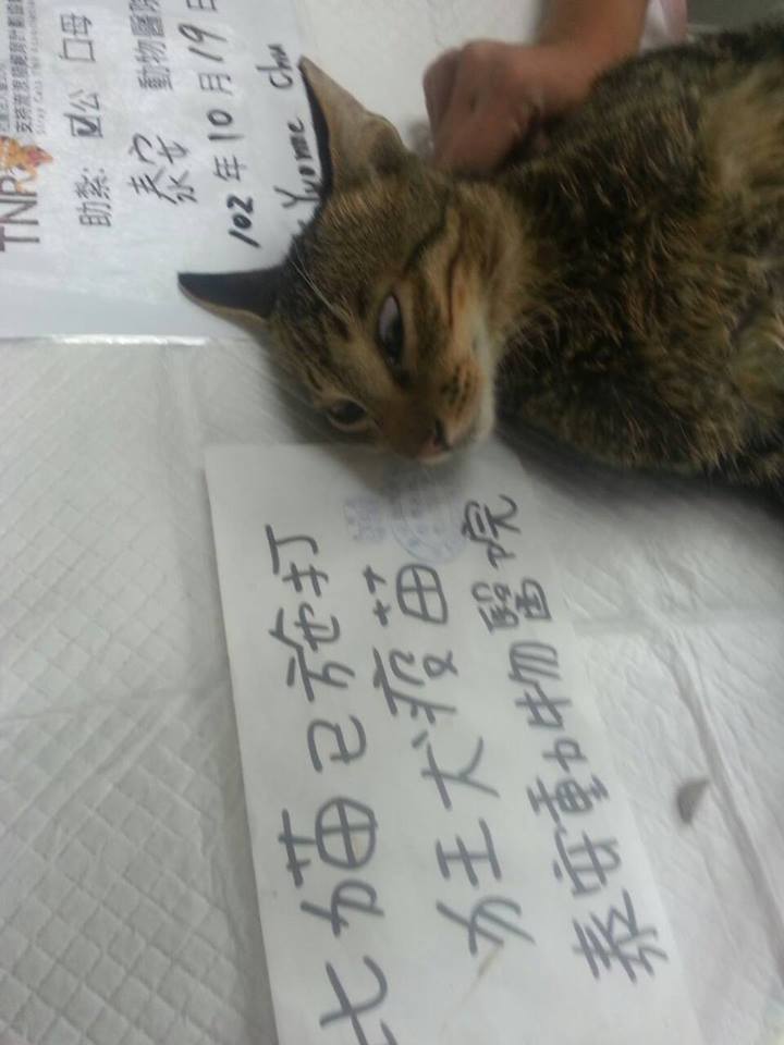 誘捕者暱稱: Yvonne49 性別: 公 花色: 虎斑 誘捕地點: 鳳山新昌公園 結紮醫院: 泰安動物醫院 結紮費用: 700 助紮者: 已付款:pacox3 額外醫療費用申請: 特別說明與誘捕心情: 常常覺得這個公園一定有貓,但每次經過都很少很少遇見牠們。直到那天傍晚六七點時經過,看到一堆在公園運動的人手裡拿著食物才看到一堆貓出現!原來牠們只有這個時間在這裡!十幾隻,真是看傻了!有人一邊餵,但却也有人一邊駡,還有人看到我在那裡抓偷偷跑來告訴我,其實那裡的住戶已經抗議到里長那裡去了,說貓太多都抓壞機車椅墊請里長要"處理"!聽得我好心驚,我趕緊跟來看熱鬧的每一位路人說我正在做結紮,以後數量就會控制下來,請大家不要再討厭牠們了,牠們也是居民,機車椅墊請用紙箱或木板等物蓋住。很多人看到我的努力(在那裡抓好久,跑來跑去,所有看到的人都蠻感動的),還會告訴我貓跑到另一頭去了...其實人還是可以教化的...很感謝協會協助募款,更謝謝不認識的捐款人願意出錢幫助牠們!
