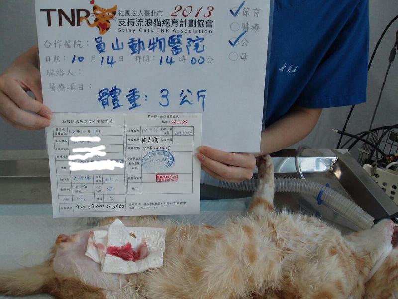 結紮醫院: 員山動物醫院 結紮費用: 1000