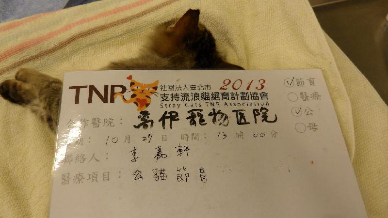 這隻灰虎斑取名叫小狐狸是我餵養的浪浪“玳瑁”於今年結紮前生下的其中一隻小喵,母喵把小貓生在一位阿嬤家裡,小貓們現在是阿嬤餵養,已滿六個多月,因此帶來結紮,需要各位好心人士贊助喵喵的結紮費用,感謝!