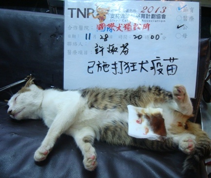 餵食了一陣子,浪貓已認得我,比較乖,等待不久便落網了,趁此機會自費幫牠驅蚤。結紮費用還需善心人士幫忙。
